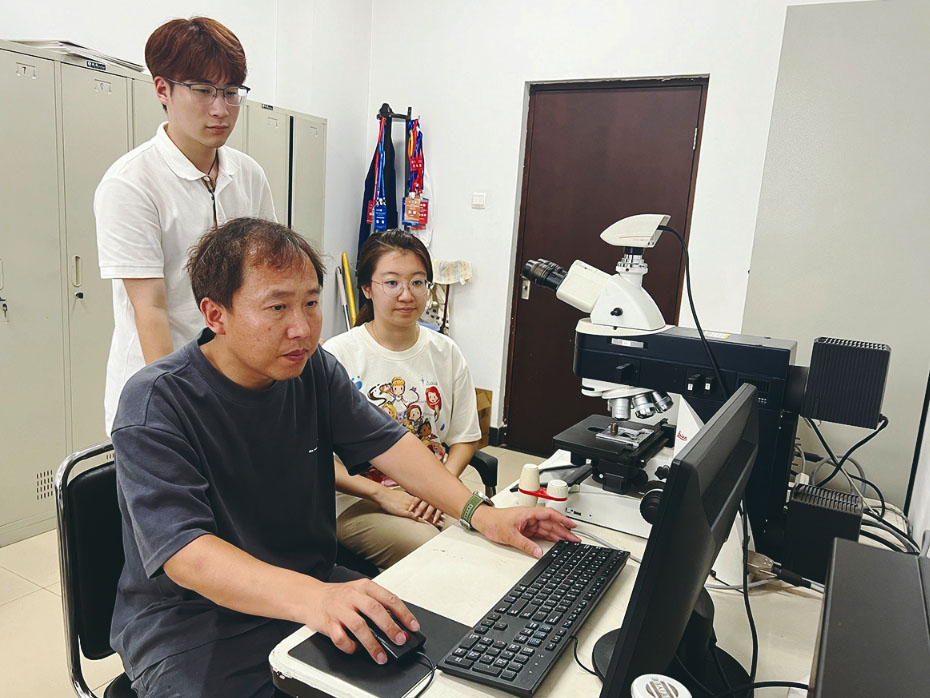 张敏(左一)指导学生进行金相实验 ■ 受访者供图
