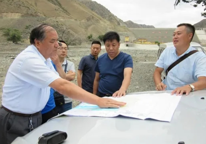 赵阳升(左一)在新疆对当地油页岩进行现场调研 ■ 受访者供图